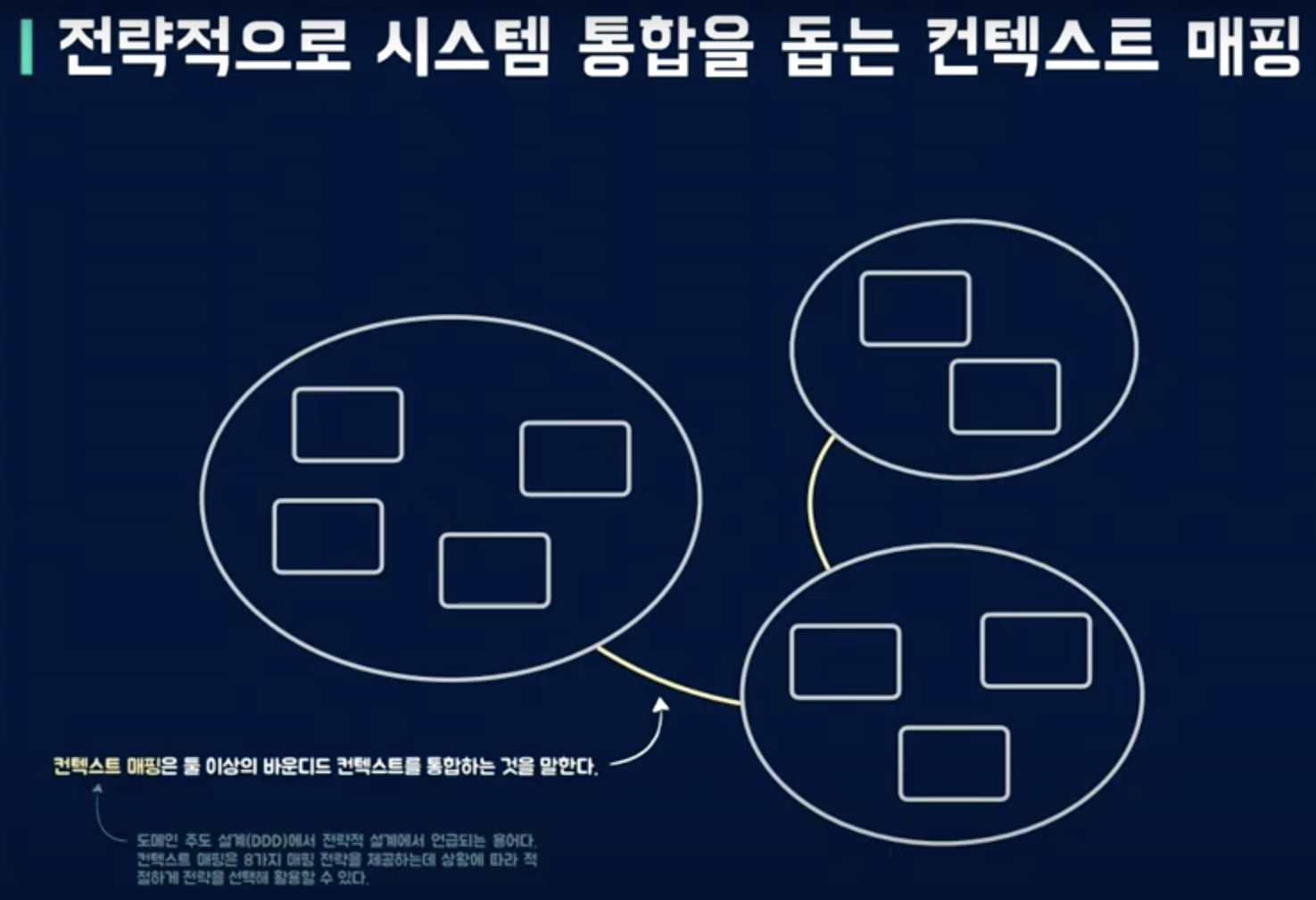모듈과 모듈을 통합할때 전략적 방법 중 하나가 컨텍스트 매핑이다. 바운디드 컨텍스트 간에 어떻게 통합할 것인가? DDD에서 언급되는 전략적 설계 방법 중 하나.