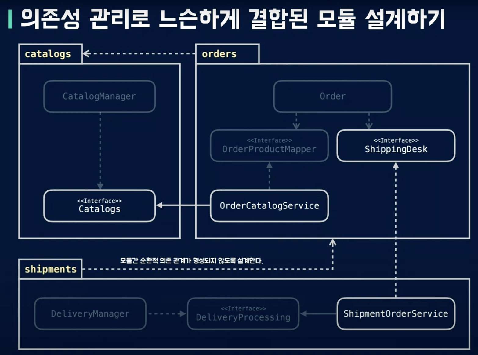 절대 복잡한 관계를 형성하지 않도록 의존성을 관리