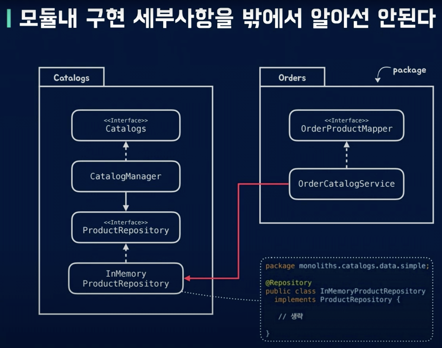 모듈내 구현 세부사항을 밖에서 알아선 안된다