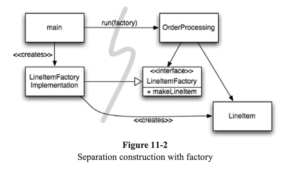 위의 그림에서 OrderProcessing ( 애플리케이션 )은 LineItem 인스턴스가 생성되는 시점을 완벽하게 통제하지만, 구체적인 방법은 모른다.