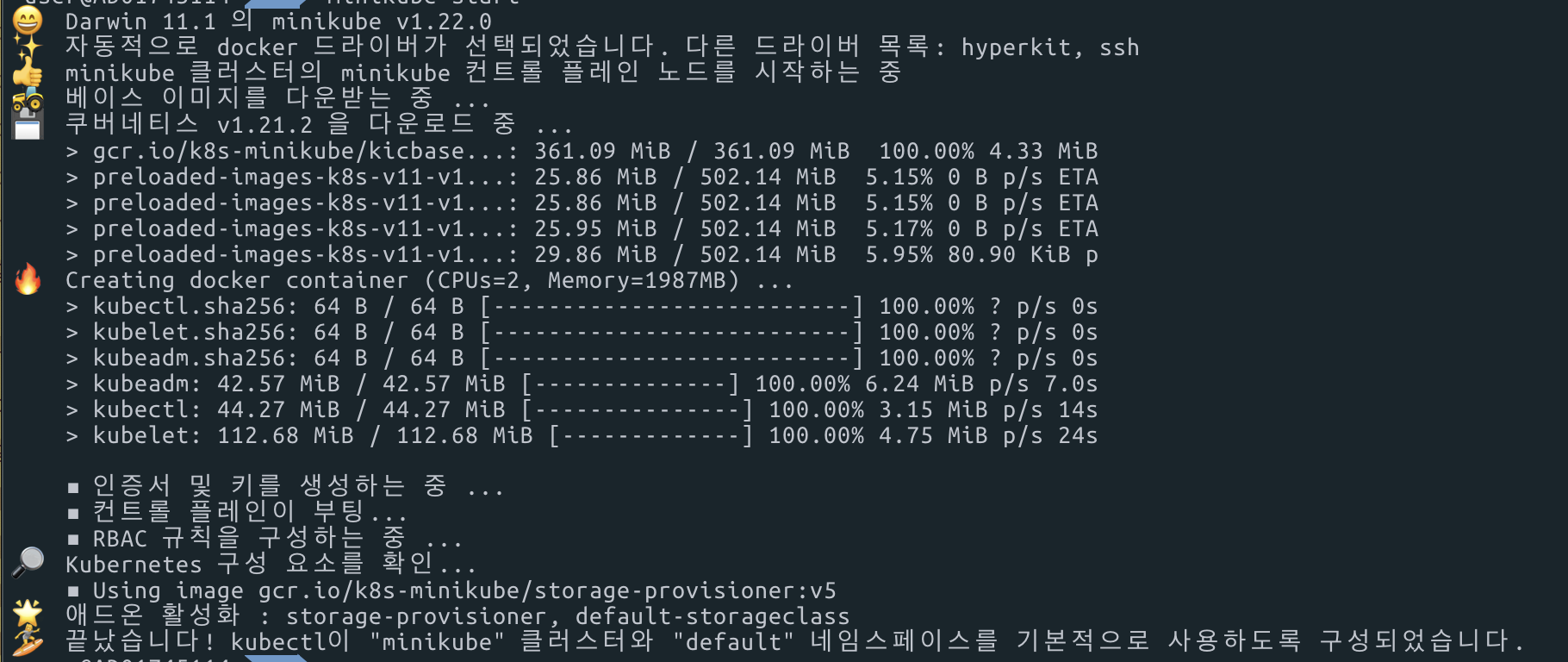 위와 같이 클러스터가 실행됩니다. (단일노드 클러스터)